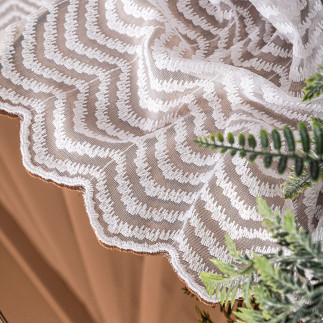 Odkryj elegancję z Firanką haftowaną ze wzorem na dole od Markizeta! Wysokość 280 cm i piękny biały kolor 001 wprowadzą do Twojego wnętrza lekkość i styl.
