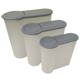 Zestaw 3 pojemników, wykonanych z tworzywa o najwyższej jakości. Idealne na płatki, mąkę cukier bądź inne sypkie artykuły. Zestaw zawiera 3 pojemniki o różnych wielkościach.